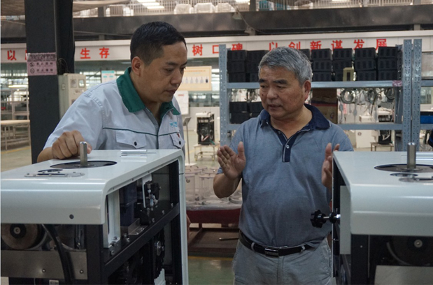 譚院士現場指示:“當下萬杰智能立足與行業最高端,打造國內最先進的智能制造生產線 ,非常好,生產智能主食設備就得用最先進的智能制造生產線,用機器換人,提升效率,保證品質和高穩定性的產品,并且與物聯網相結合,將萬杰智能的生產水平提升到全國甚至世界的先進水平”。